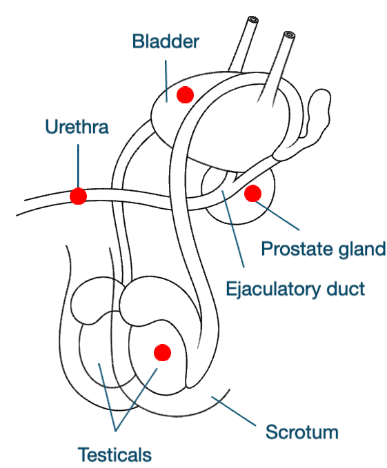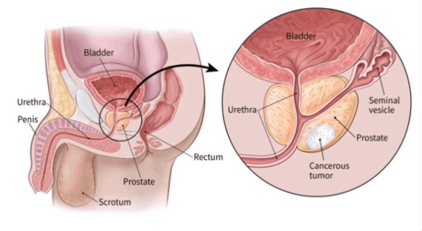 Prostate cancer begins when cells in the prostate gland start to grow out of control. This gland is only found in males. It makes some of the fluid that is part of the semen.1